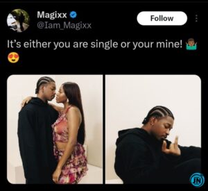 In his caption, Magixx fueled the dating speculations with Vee by writing: “It’s either you are single or you’re mine! 🤷🏾♂️😍”